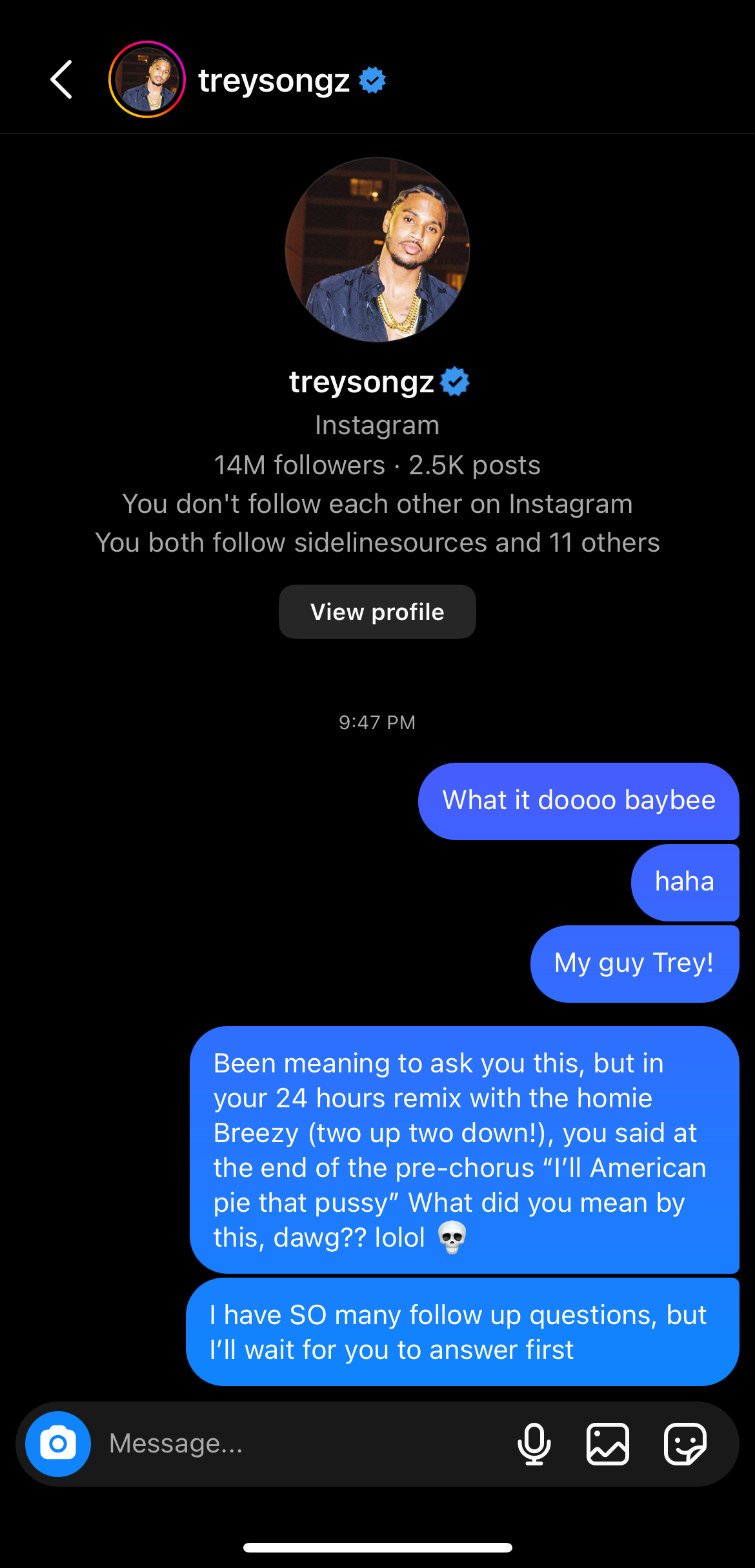 So much of my problem with this journey — and why I avoided it to begin with— is that I tend to doubt myself and it causes me extra steps. I hate extra steps. But the truth is that after so many extra steps is when I finally get a little clarity. And I thought: “Duh. Why don’t I just ask Trey directly what he meant?” Keyword there being “direct”. With the rise of social media, we have unprecedented access to celebrities. I was going to direct message him and get an answer myself.